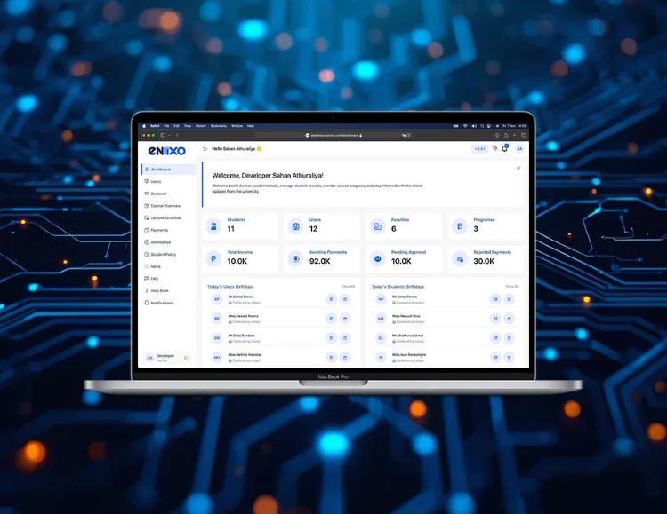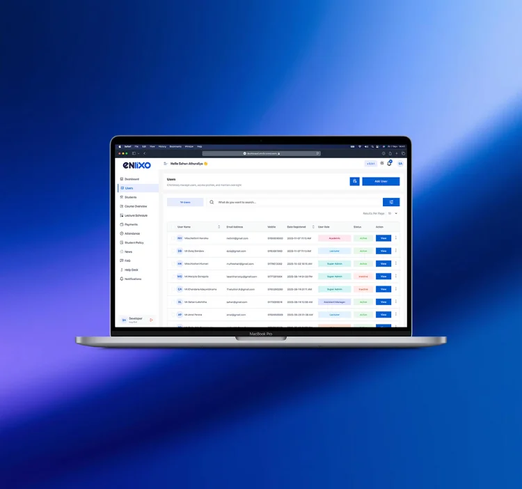 ENLIXO is a fully integrated Learning and University Management System built to digitalize every operation of modern educational institutions. It combines academic workflows, financial management, student services, analytics, and communication into one seamless system accessible from both web & mobile.