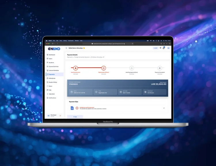 Yes. ENLIXO supports multiple payment gateways (like PayHere and WebXPay) and allows students to upload payment slips manually. Our AI duplicate slip detection automatically prevents double payments.
