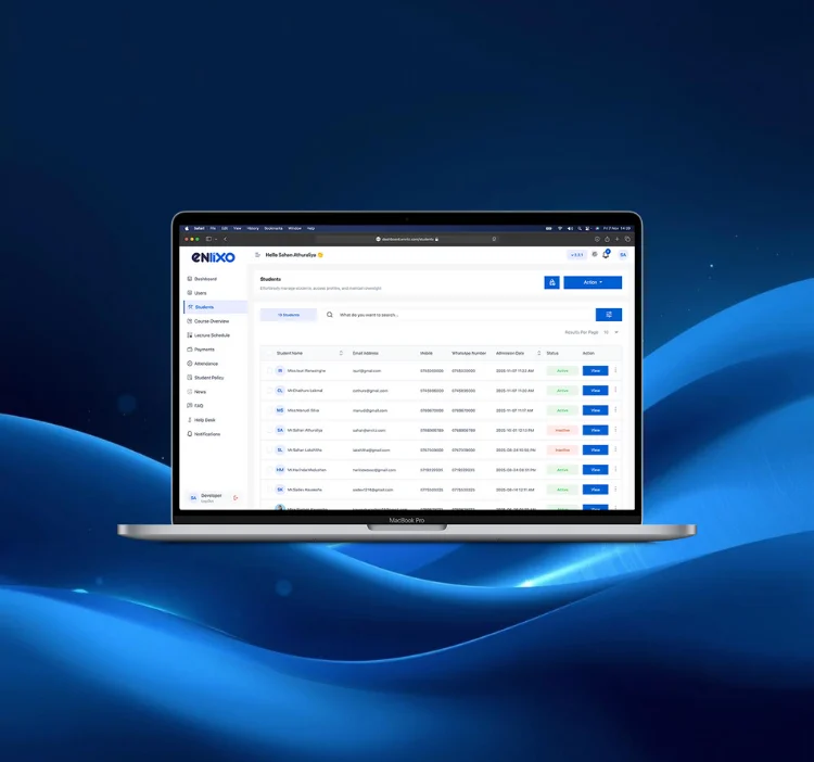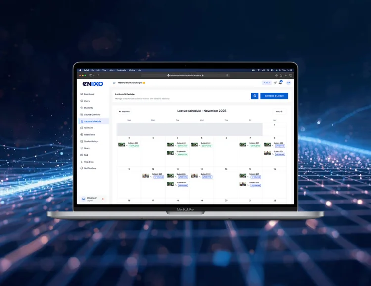 ENLIXO is a fully integrated Learning and University Management System built to digitalize every operation of modern educational institutions. It combines academic workflows, financial management, student services, analytics, and communication into one seamless system accessible from both web & mobile.